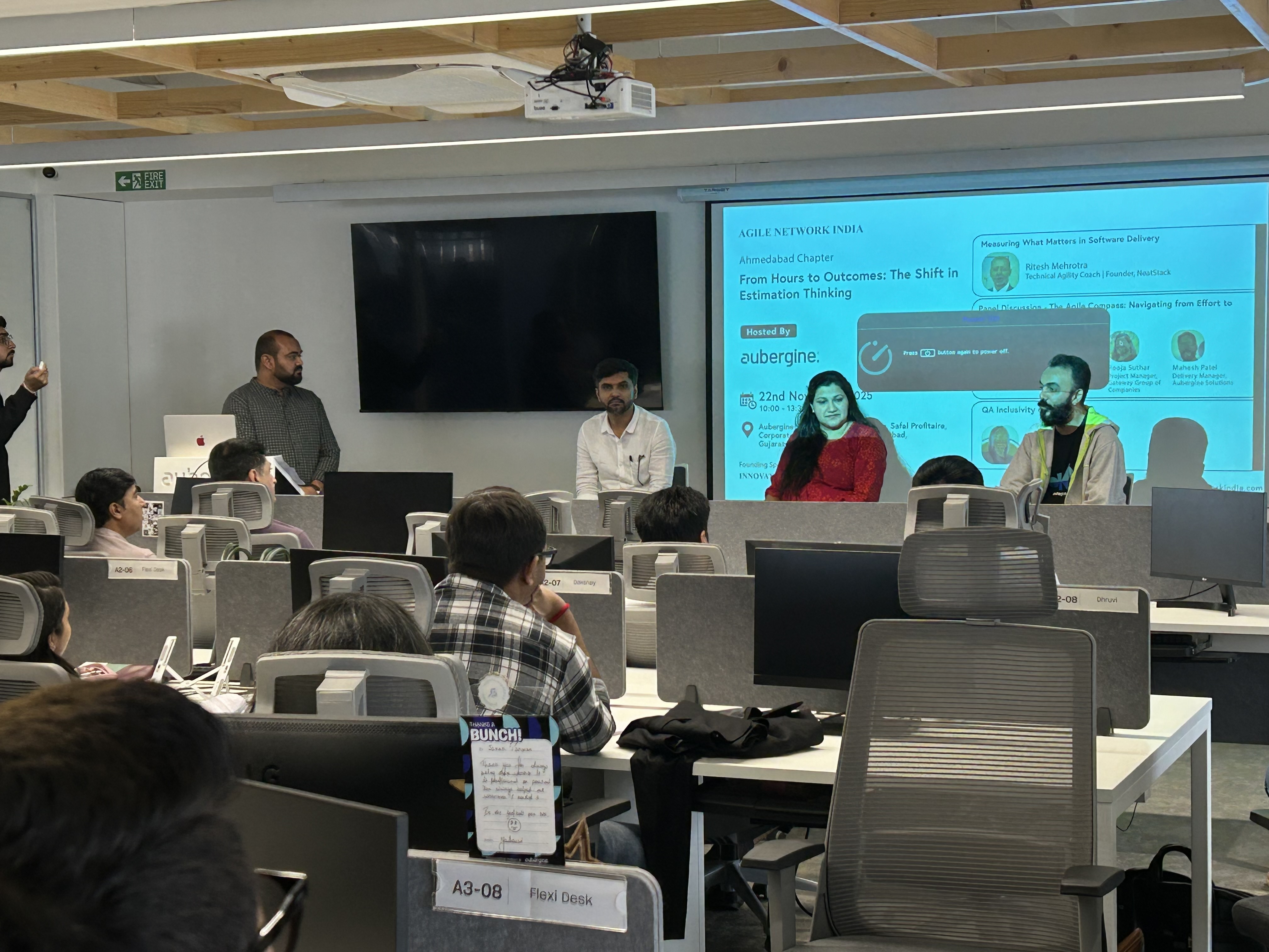 Aubergine is proud to be the venue partner for an in-person Agile community meetup hosted by Agile Network India Community in Ahmedabad. The session, “From Hours to Outcomes: The Shift in Estimation Thinking,” focuses on how modern Agile teams are rethinking traditional estimation practices to better align with real business value.