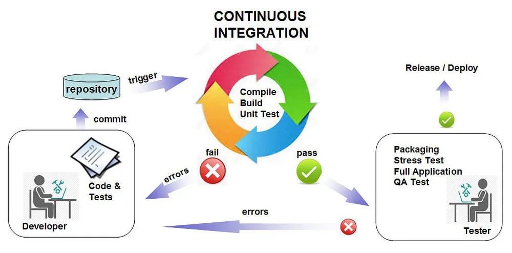 Imagine 10 developers are working on same project. They push code on repository then manager generate the build and test it. While testing, manager found bugs in the build and he/she failed the build. After that developer fixed the bug and repeat the same process.