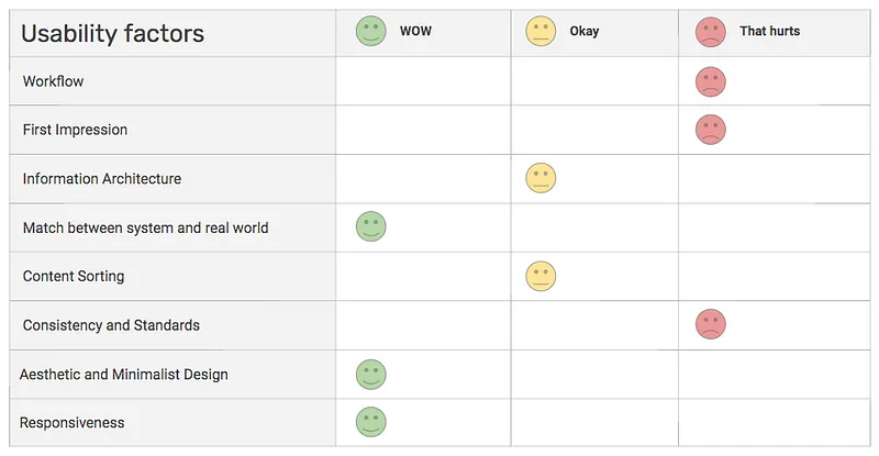 This report card summarises which usability factor of the product is impressing the users versus hurting them.