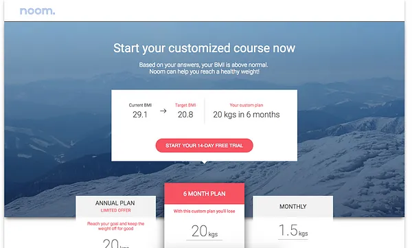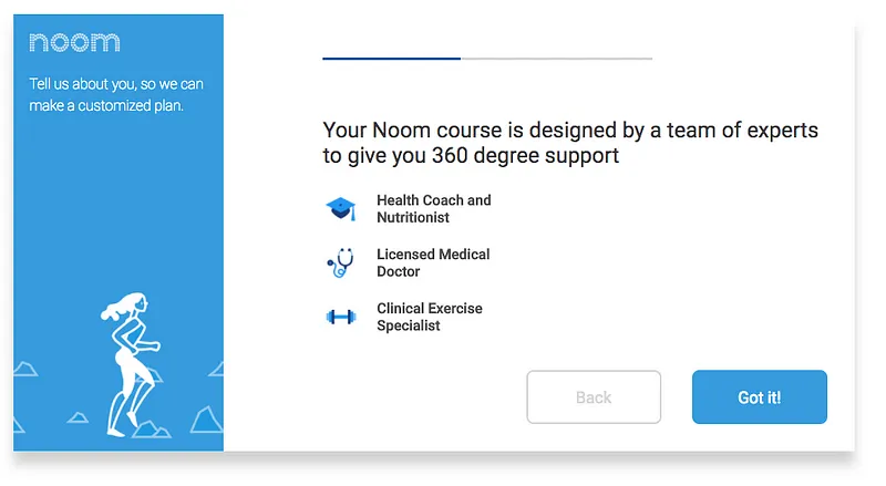 Since the app is promoted as making a lifestyle change, which covers more area than losing weight. If Noom’s target audience is beyond over-weight people, that could somehow be included in the design. Otherwise, the assumption could be a surprise to the user and also prove to be irrelevant in many cases.