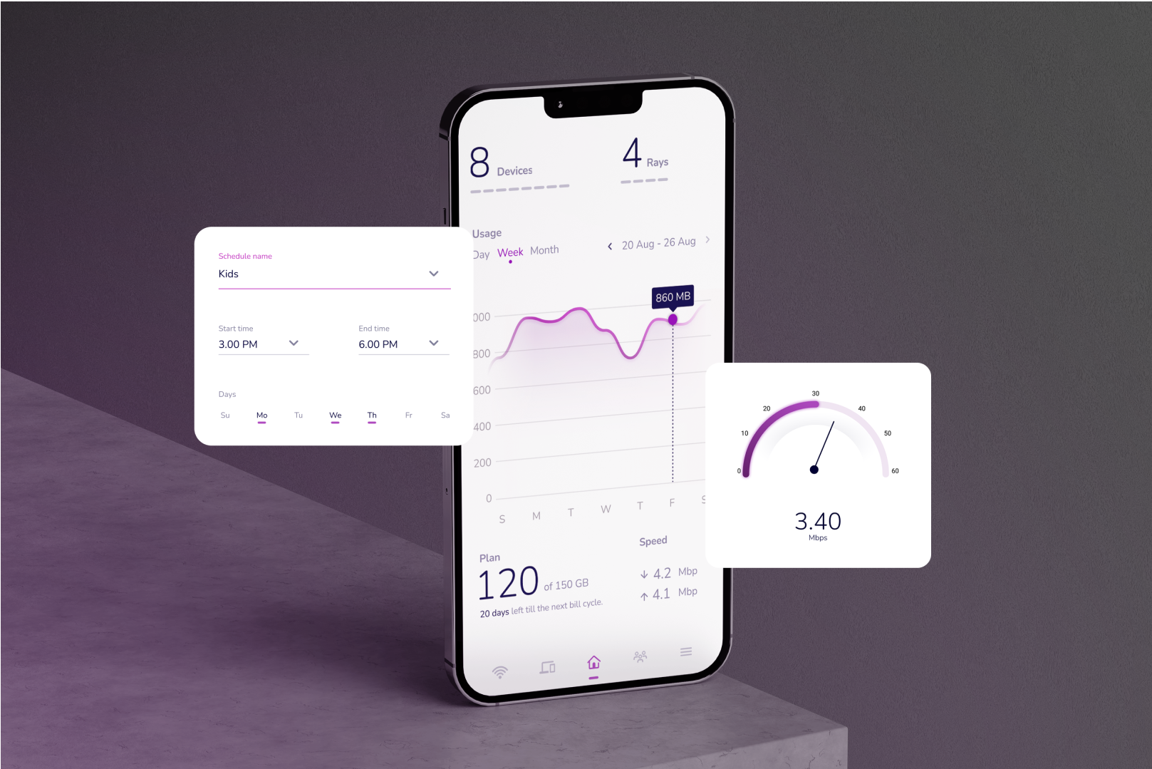 Aubergine Solutions partnered with Ray, an innovative startup from Singapore, to revolutionize the way users manage their home wifi. Our goal was to create a mobile app that not only simplifies complex wifi operations but also caters to a broad spectrum of users, from tech novices to experienced IT administrators. The collaboration was aimed at enhancing the digital experience associated with Ray’s cutting-edge wifi router, making it more accessible and user-friendly.